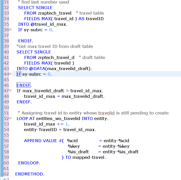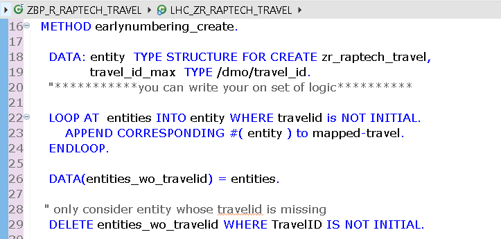 LOOP AT entities INTO entity WHERE travelid is NOT INITIAL.